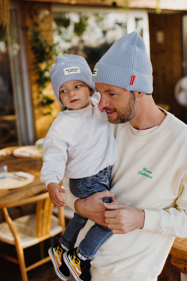 Tieni al caldo la testa dei tuoi bambini con il cappellino in lana "Cool Kids Only" color azzurro artico! Non pizzica ed si sentiranno super cool! 😉