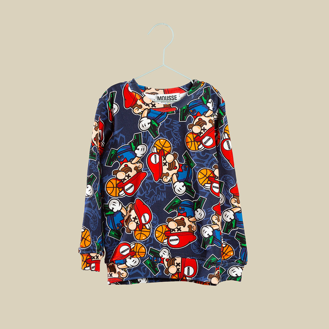 Felpa girocollo stampa Air Mario all-over. Garzata all'interno, per i vostri bambini amanti di Super Mario!