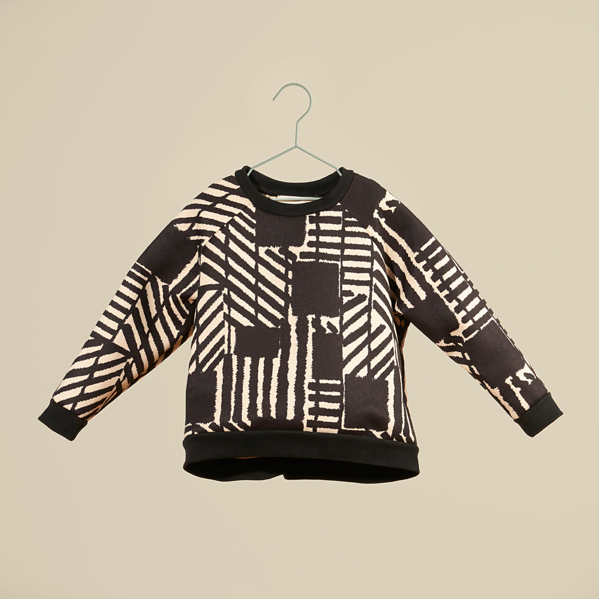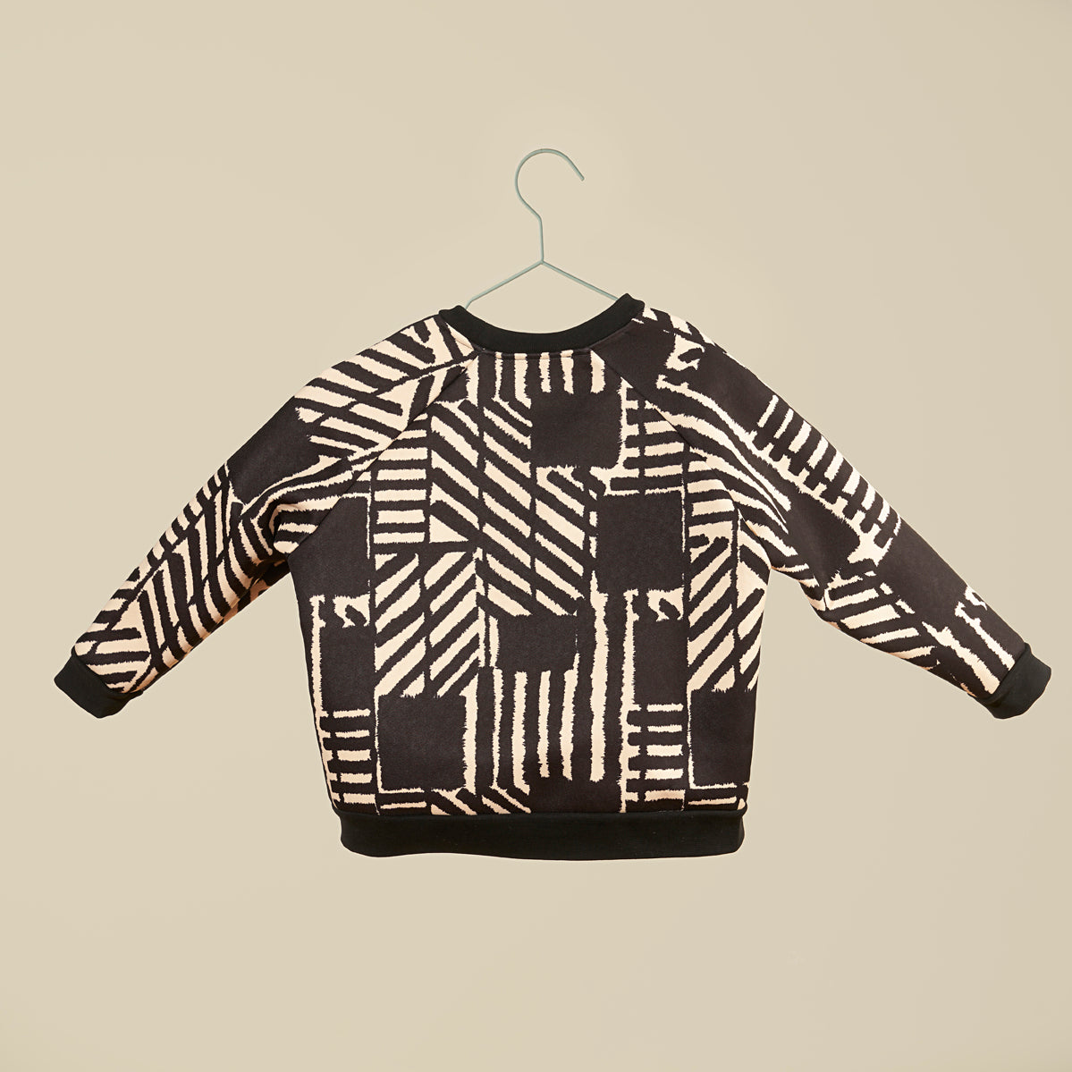 Felpa in bouclè stampato bianco e nero, manica lunga, unisex. Calda ed avvolgente.