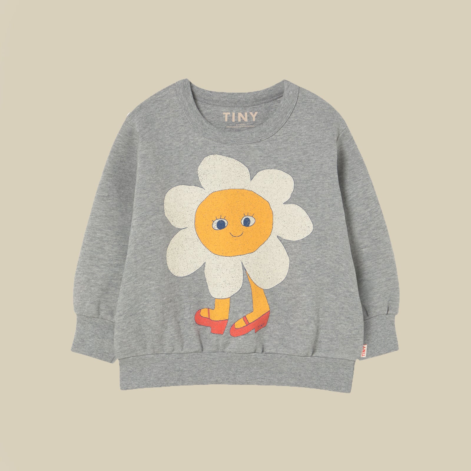 Felpa grigia Flower realizzata in cotone al 100%. Silhouette morbida con collo rotondo e bordi a costine. Stile e comfort insieme ad un'attenzione particolare alla qualità. Perfetta da indossare tutti i giorni.