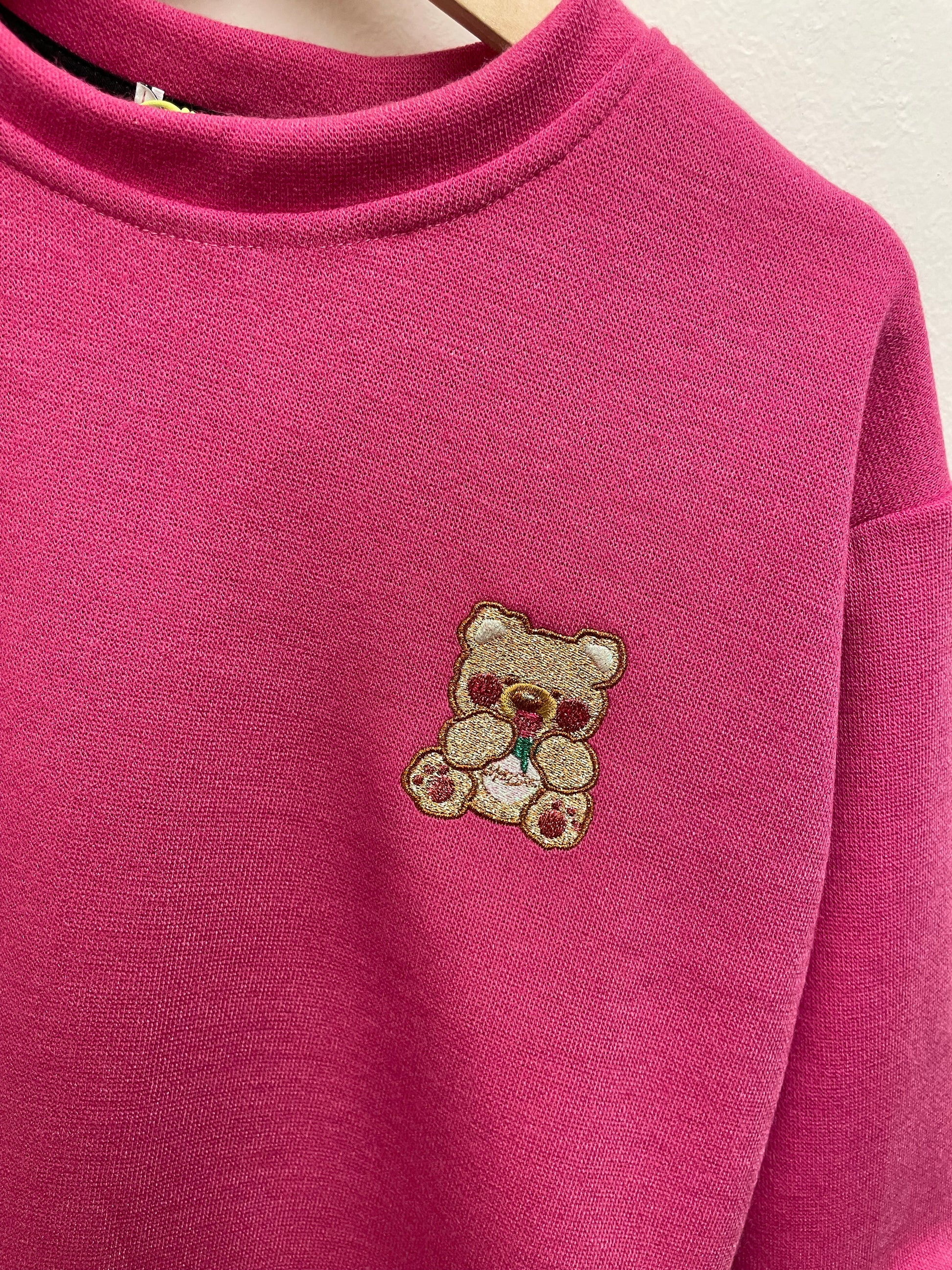 Maglia in caldo cotone fuxia con tenero orsetto sul davanti, morbida e calda per tutti i giorni!