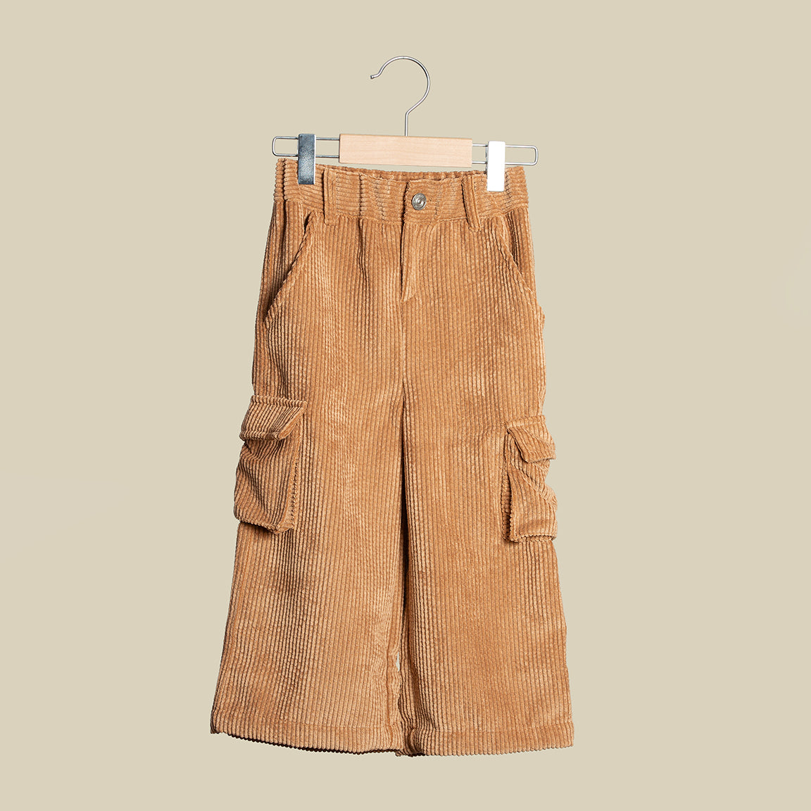 Pantalone cargo velluto a costine cammello, tasconi laterali con barboncino Arthur. Comodo con elastico in vita. Abbinalo alla sua t-shirt per un look troppo carino!