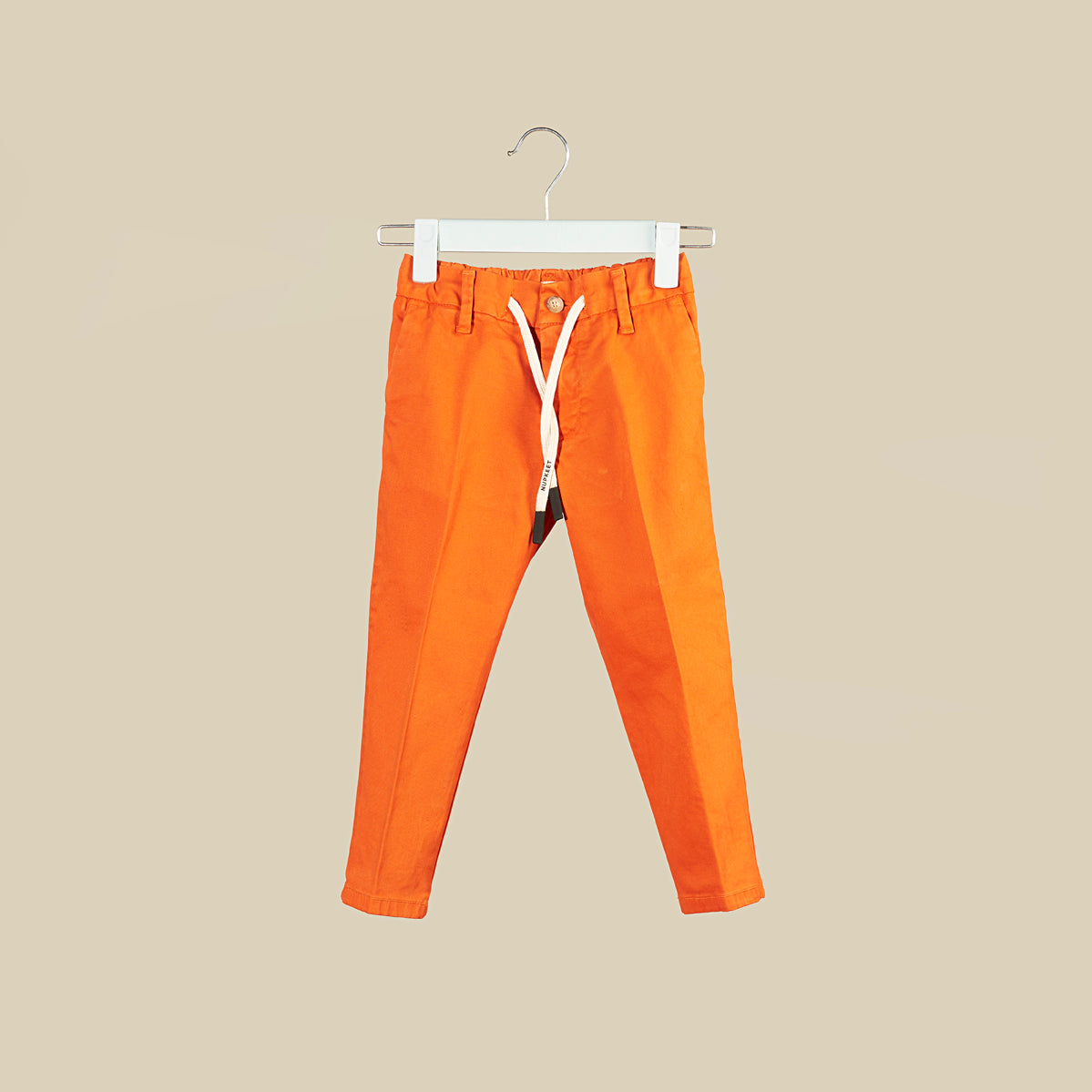 Pantalone color coccio, in cotone gabardine con tasche ed elastico in vita. Taglio sartoriale per un pantalone in tessuto di alta qualità, elegante e resistente.