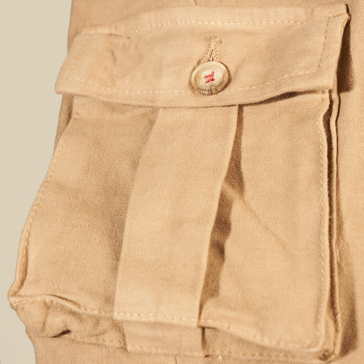 Pantalone in fustagno cammello con tasconi sulle gambe, tinto capo, bottone con zip e vita regolabile grazie all'elastico interno. Morbido al tatto, caldo, resistente, piacevole da indossare.