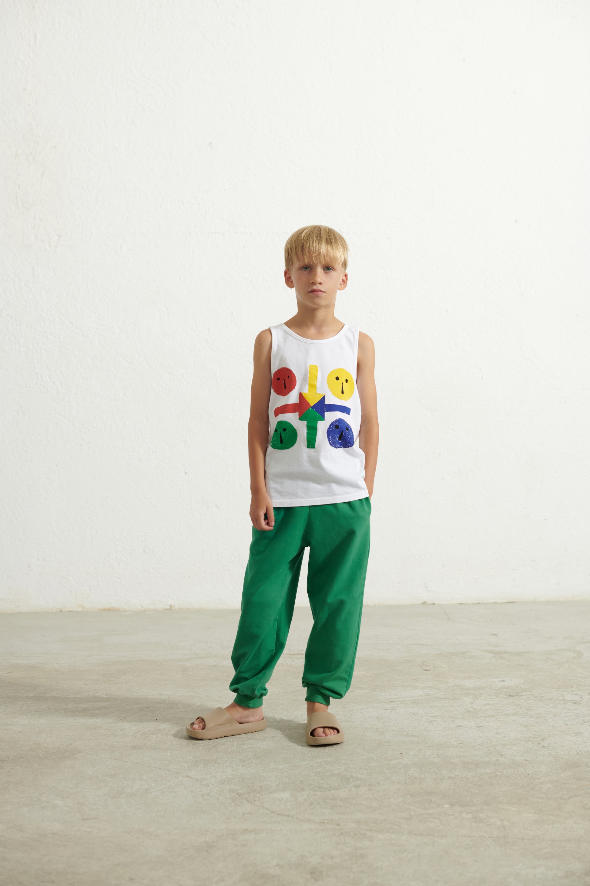 T-shirt a canotta bianca, con stampa sul davanti tinta in capo