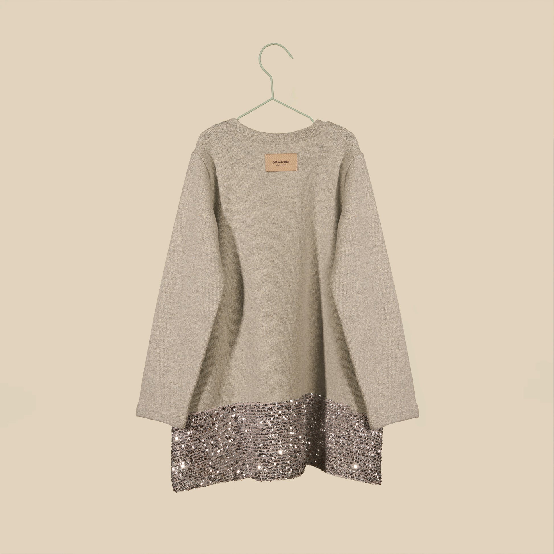 Vestino in caldo cotone grigio perla con paillettes argento, interno felpatino, per far splendere le vostre piccole principesse! Made in Italy